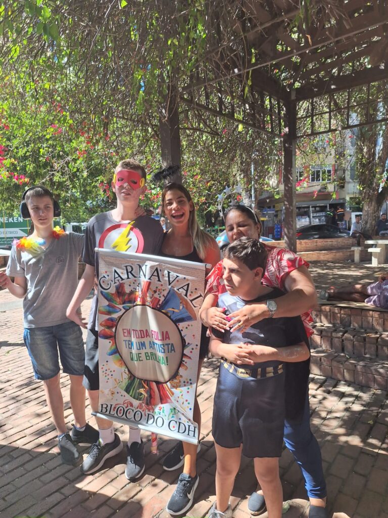 Tivemos também fantasias criativas, serpentinas, confete, danças e sorrisos por todos os lados. Um verdadeiro espetáculo de alegria e participação, respeitando o tempo e o espaço de cada um, como é a essência do nosso trabalho no CDH.